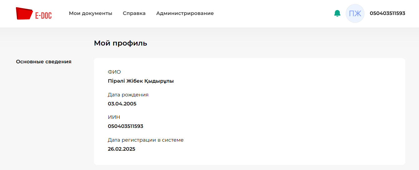 В профиле во вкладке «Мой профиль» отражаются основные данные Пользователя (см. рисунок 1):
