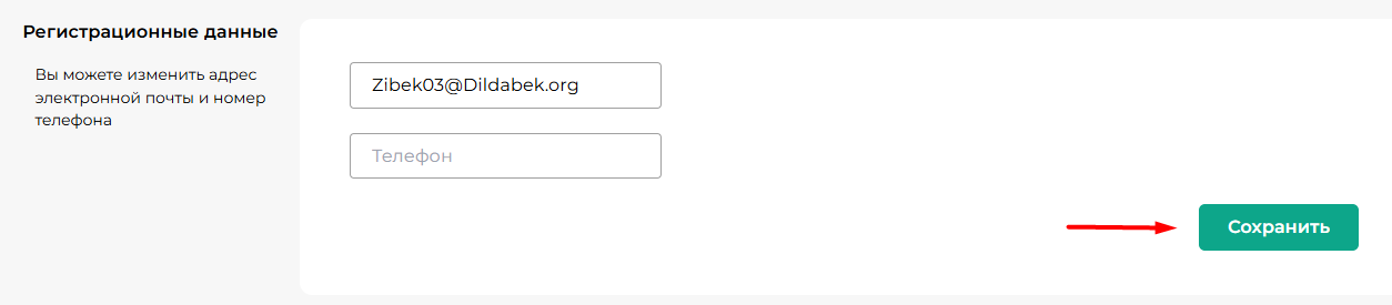 В разделе «Регистрационные данные» имеется возможность отредактировать электронный адрес и контактный номер (см. рисунок 2).