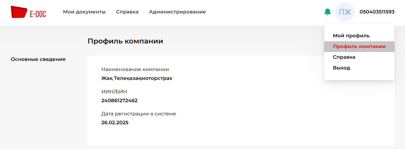 В профиле во вкладке «Профиль компании» отражаются основные данные компании (см. рисунок 5):