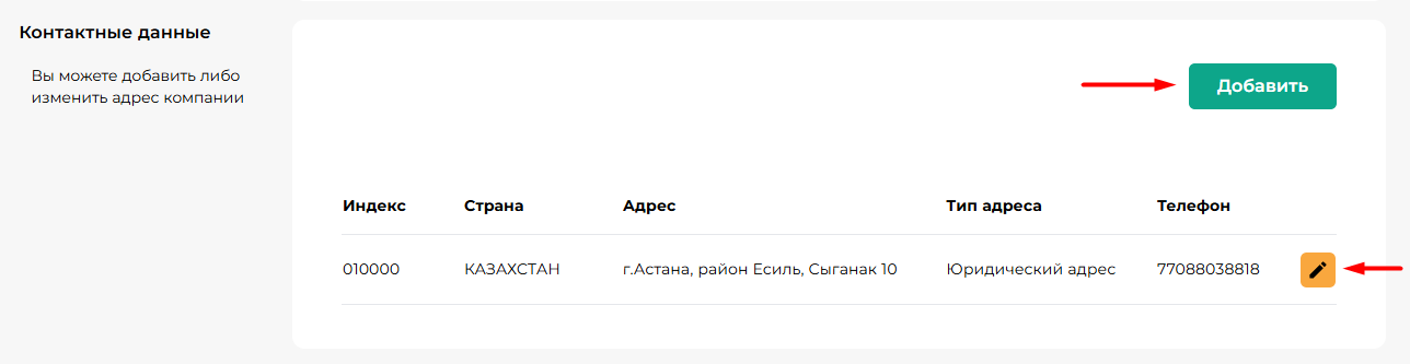 В разделе «Контактные данные» Администратор компании может добавить/редактировать данные (см. рисунок 6).