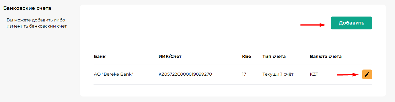В разделе «Банковские счета» Администратор компании может добавить/редактировать данные (см. рисунок 8).