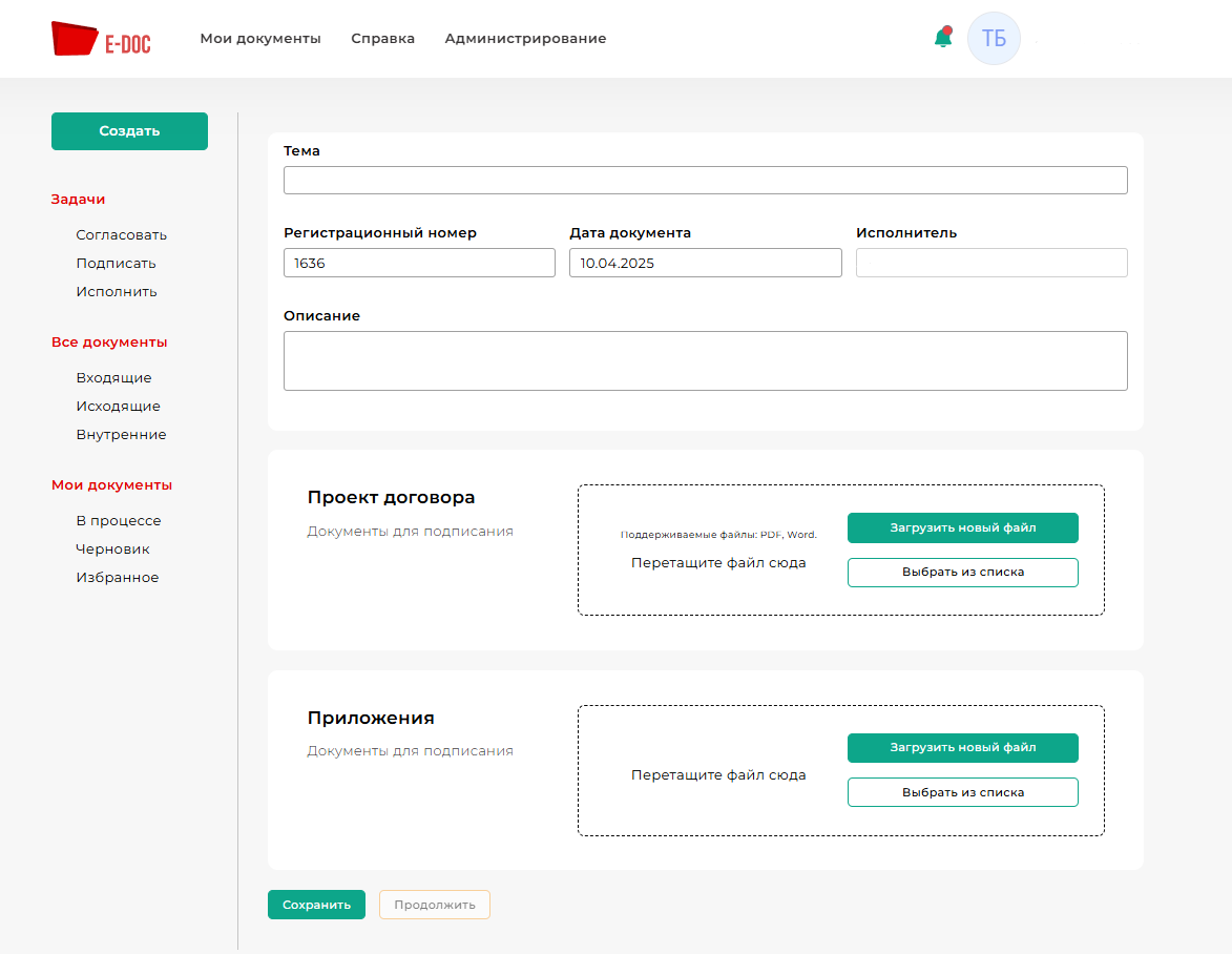 Поля для заполнения отображаются в зависимости, какой шаблон вы выбрали. У каждой компании свой уникальный шаблон. Для загрузки шаблонов для договоров, необходимо обратиться в техническую поддержку портала EDOC.