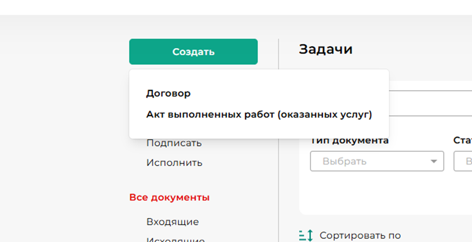 Далее из списка нужно выбрать «Договор» (см. рисунок 2).
