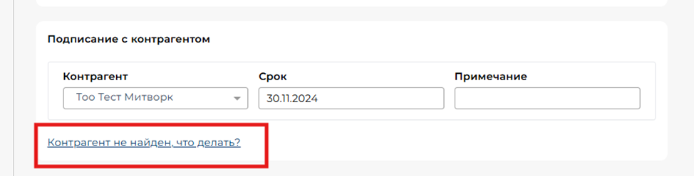 После, в задаче подписание контрагентом вы должны выбрать контрагента и указать срок исполнения (см. рисунок 7).